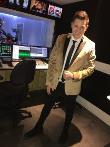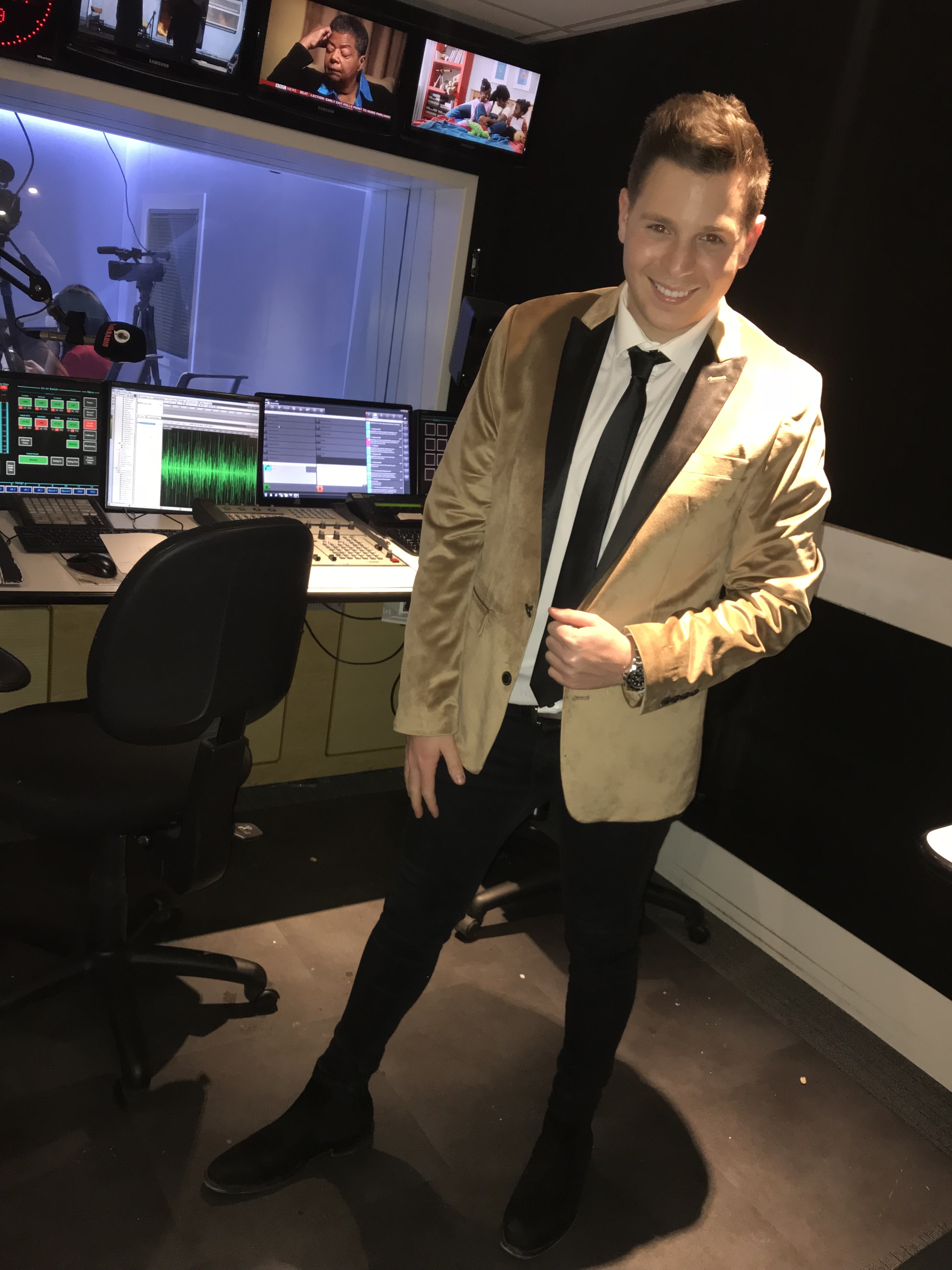 A behind the scenes shot of Josh about to go on air to cover the Academy Awards 2018 on talkRADIO